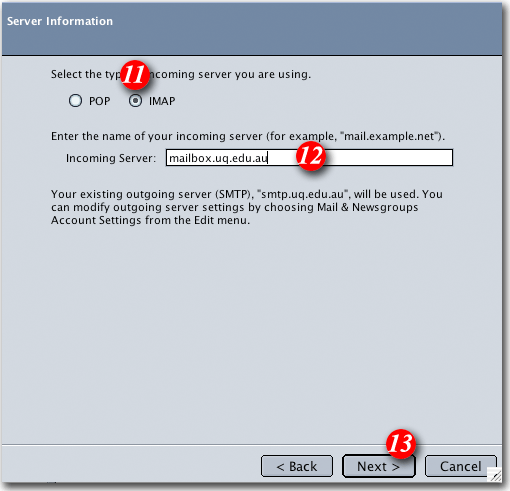 | 20)Type in 'smtp.sarvers.net' as the outgoing server |