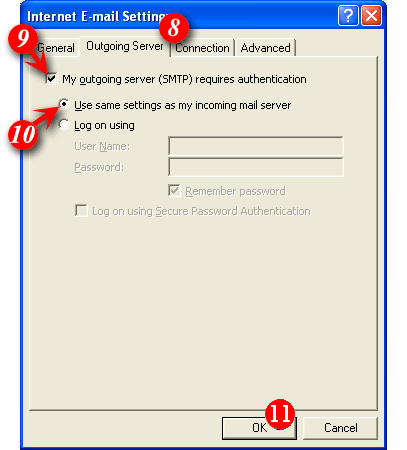 | 14)Enter 'smtp.sarvers.net' as the Outgoing Mail Server (SMTP) | ||||