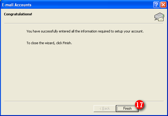 | 12)Enter your name and e-mail address. (Note: the name you enter here will be displayed on all outgoing email messages). | ||||