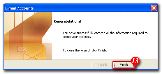 12)Click [More Settings], then Select the 'Outgoing Server ' tab. Tick the 'My outgoing server (SMTP) requires authentication' checkbox. Place a dot in the 'Use the same settings as my incoming mail server' option. Click the [OK] button. Click [Next] to